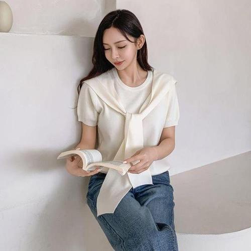 여름 캐주얼 반팔 숄 러블리 니트 세트