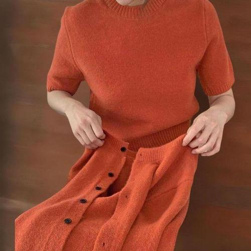 [신상오픈런]여성 비스코스 라운드넥 반팔 니트 카디건 세트