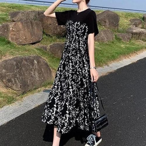 반팔 롱 백프린팅원피스 롱티원피스 루즈핏원피스 WFKPDJ9