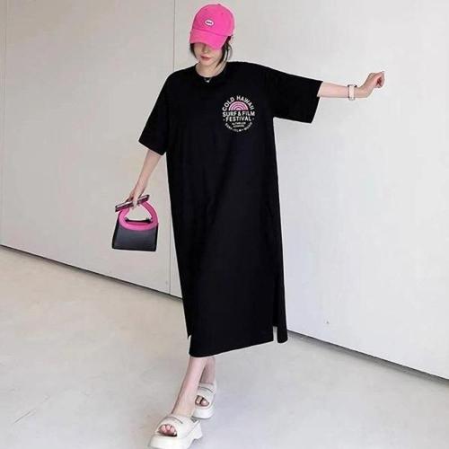 여성 반팔 티셔츠 루즈핏 라운드넥 여름 반팔티 롱티셔츠 롱원피스