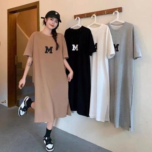 [엄지척]영문 레터링 포인트 롱 옆트임 반팔 원피스_19948762_667501