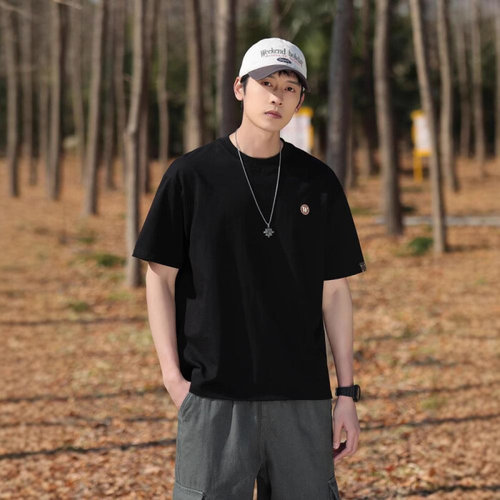 260g코튼 라운드넥 순면 곰돌이 프린트 남성 반팔 티셔츠
