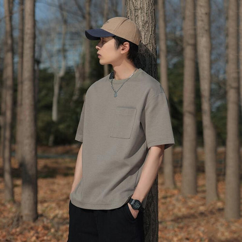 남자반팔 남자 캐주얼 외출 패션 심플 오버핏 5부 반팔 티셔츠