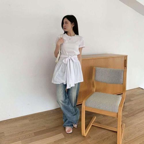 여성 쁘띠 반소매 귀여운 면원단 빅리본 원피스