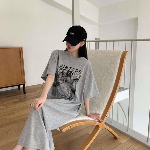 후암마켓 스탠다드 레터링 데일리 반팔 롱 원피스 루즈핏