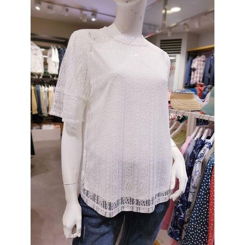 [올포유]여성-비침걱정 없는 안감(스판짱짱 시원한 터치감)있는 레이스 반팔 티블라우스-LTRN5436
