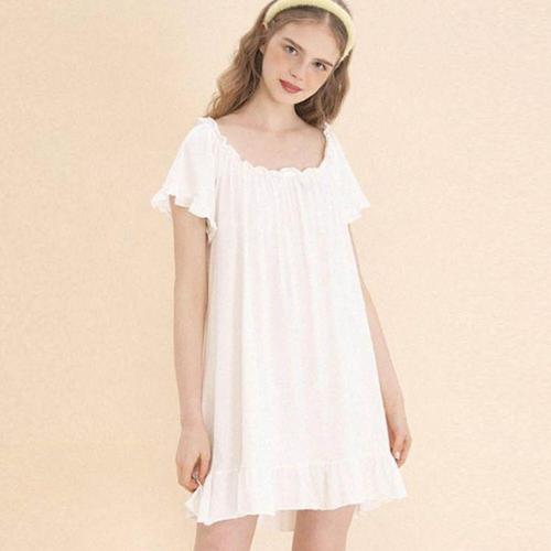 여성 모달 원피스 홈웨어 잠옷 원마일웨어 무지 반팔 라운드넥 사계절 여름