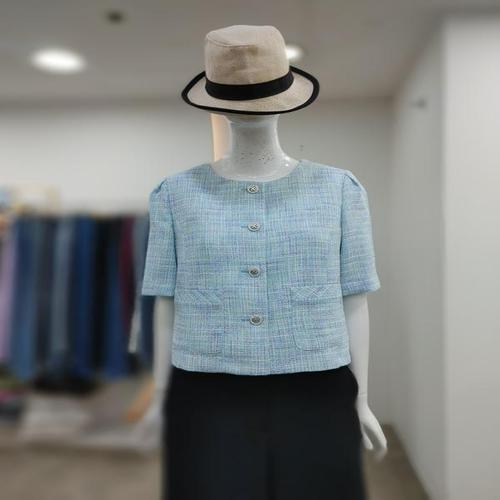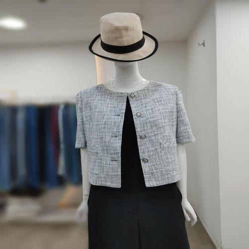 [다잇템][다잇템] 여성용 카라없는 재킷 트위드 진주버튼 반소매 오피스웨어_21787890_588872