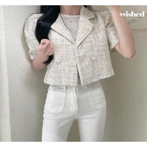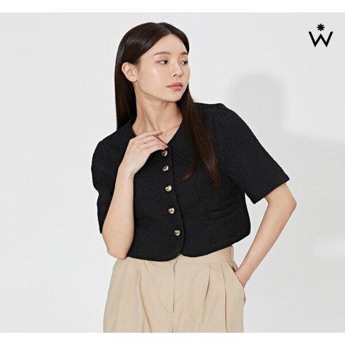 [위시드]원버튼 카라 트위드 반팔 크롭 자켓 (WIAAJK087)