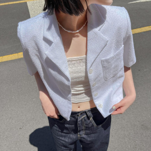 프렌치 여자 반팔 자켓 데일리 라운드 반팔 정장 코트 숏 상의 봄 여름 여성 반팔 트위드 자켓 YSQ