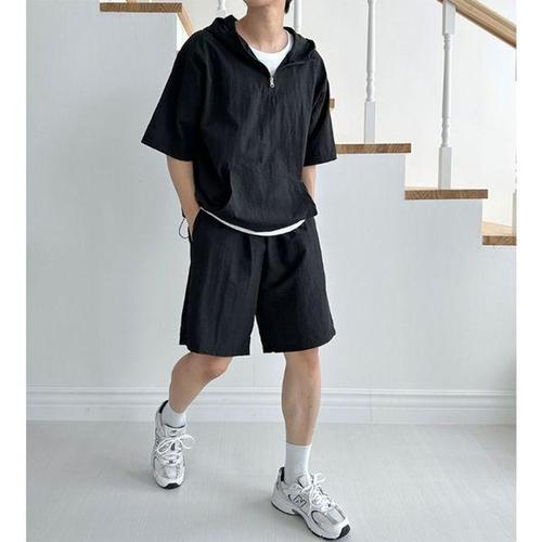 [에이치플러스몰]남자 후드 아노락 반팔 반바지 세트 운동복 홈웨어