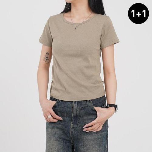 [셀러허브_여성트랜드패션]화이트빌딩 1+1 여자 반팔티 여름 면 기본 레이어드