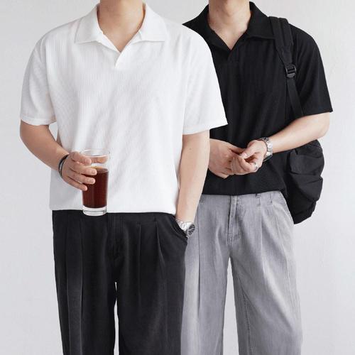 [쿼터]1+1 남자 골지 오픈 카라 반팔 티셔츠 4color