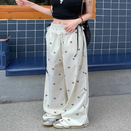 [라일리여성의류] Rly 와이드핏 리본 하이웨스트 여자 밴딩바지 발레코어