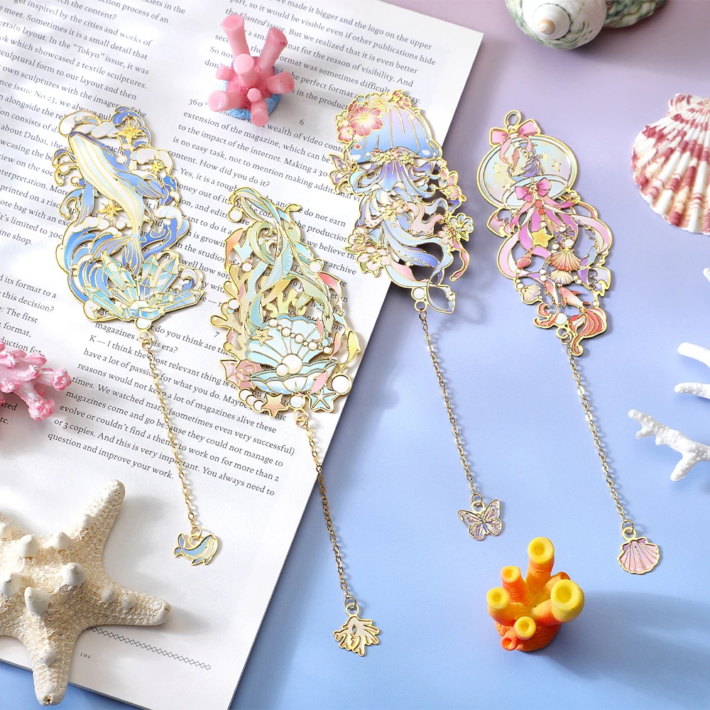 1개 해양 동물 금속 책갈피 조개 불가사리 디자인 체인 태슬 포함 플래너 액세서리 독서 애호가 작가 선물용