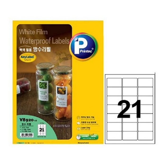 오피스넥스 라벨지 방수 V8920 21칸 10매 프린텍