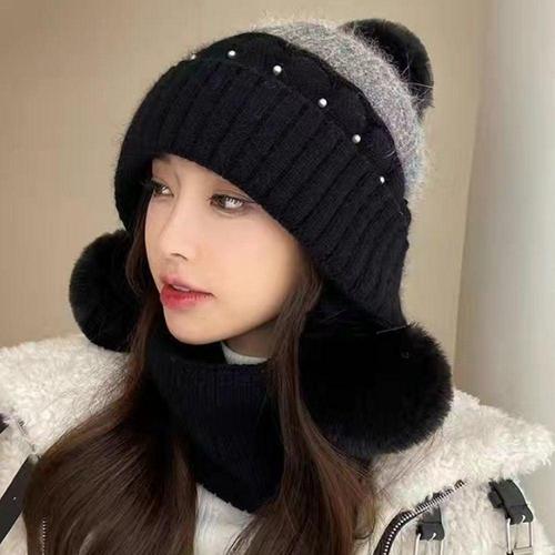 여성 5컬러 겨울 기모 소재 빅방울 비니 넥워머 세트 WFFJJ3K