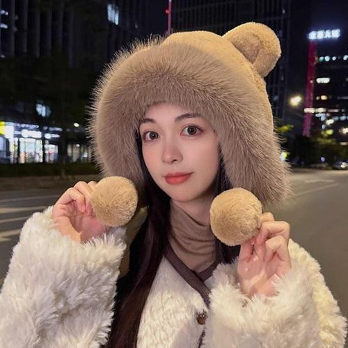 [BZJLPSVU_51IE]라운드 모자 여성 히터 털모자 방울