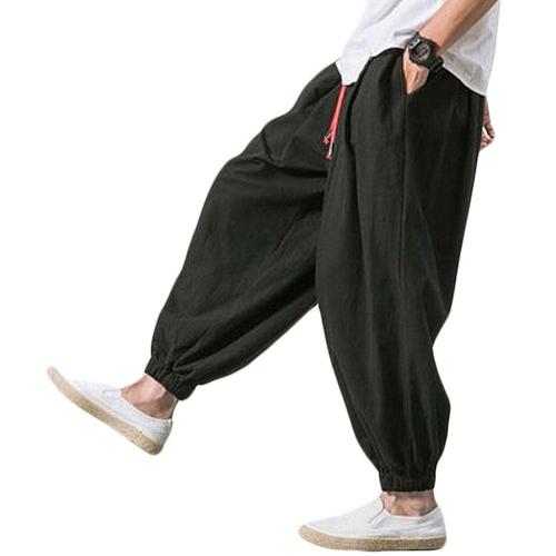 [에이치플러스몰]남성 차이나풍 면마 와이드 배기팬츠