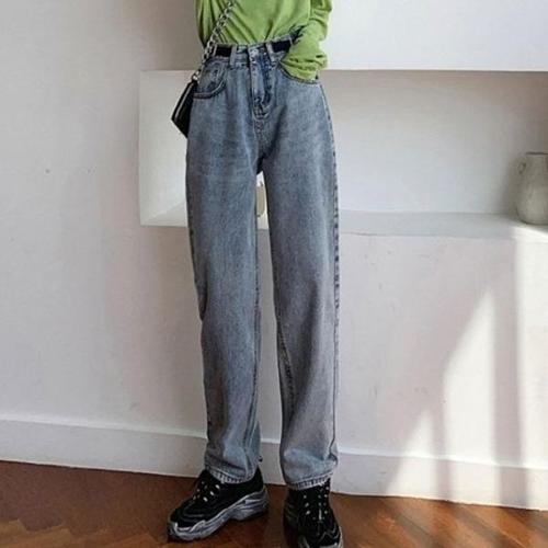 여자 사계절 스판 워싱 슬림 배기핏 데님팬츠