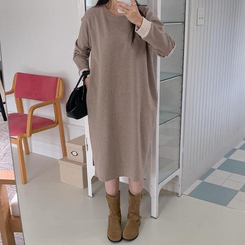 [유야]배색 포켓 라운드 긴팔 롱 원피스 홈웨어 간절기 -OP0147H- 빅사이즈 루즈핏 여성 봄