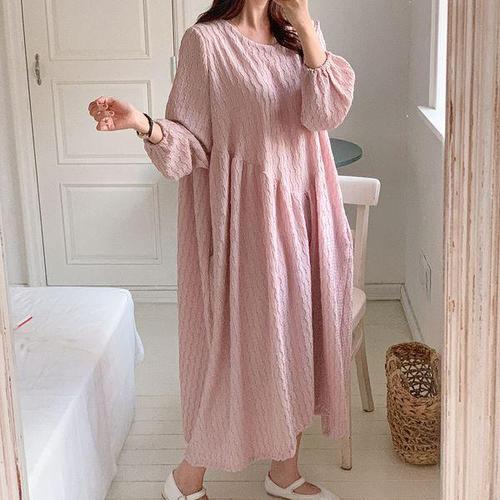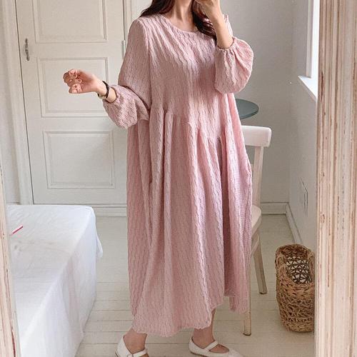 [다잇템]여자 밴딩퍼프 분홍색 큰사이즈 링클 롱원피스