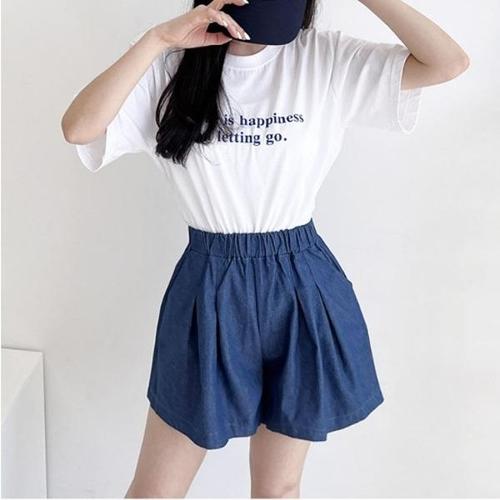 여성 핀턱 밴딩 데님 하프 팬츠 1P 청반바지 캐주얼 WFLQNKW