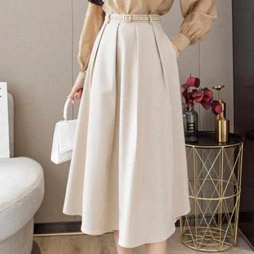 [신상오픈런]여성 심플한 톤다운 벨트 플레어 롱 스커트