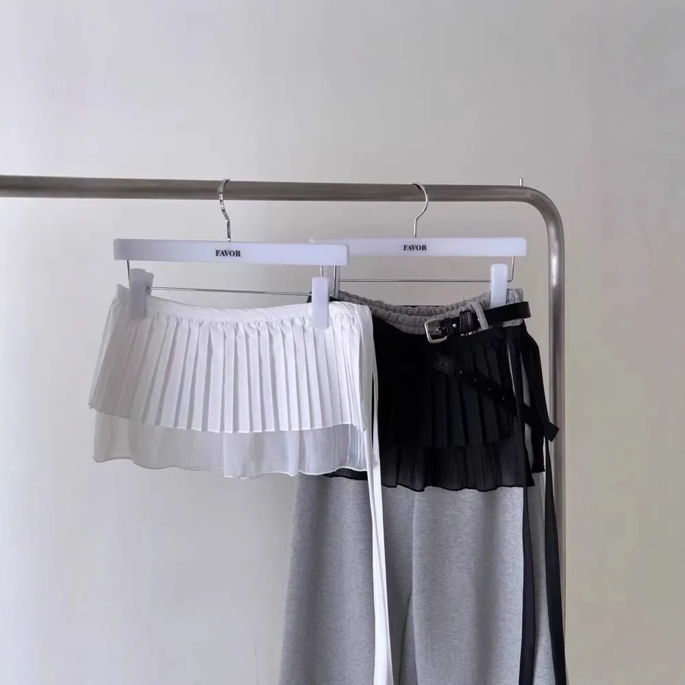 힙합 레이어드 의상 플리츠 스커트 스윗 셔츠 익스텐더 러플 엣지 허리밴드 Y2K 메쉬 레이스업 힙 스카프
