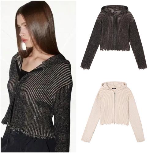 [버커루]여성 빈티지 크롭 후드 집업 니트 가디건 B244KC810P