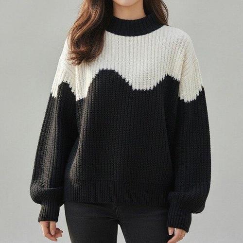 [핑크엘리제]겨울 배색 심플 시크 벌룬소매 케데이아니트