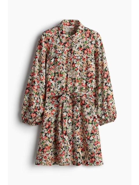 [에이치엔엠] 벌룬 슬리브 셔츠 드레스 라이트 핑크/플로럴 1241440002