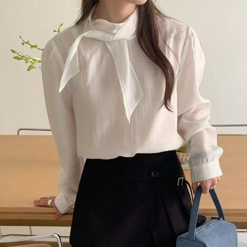 [다잇템]여자 리본 벌룬 골져스 보우 출근룩 블라우스