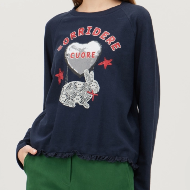 [베네통] 글리터 자수 골지 슬리브리스 니트_BAKP01541IV
