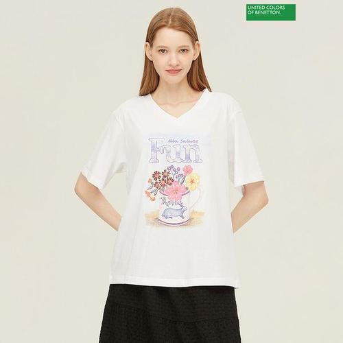 [베네통]베네통 핫피스 티셔츠 BATS93341_WH