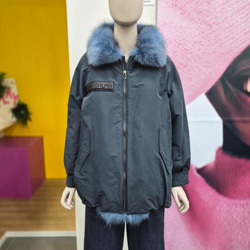 베네통/애플아울렛/백 니트 배색 브론즈 폭스 퍼 구스 롱 패딩/BAPDA6561