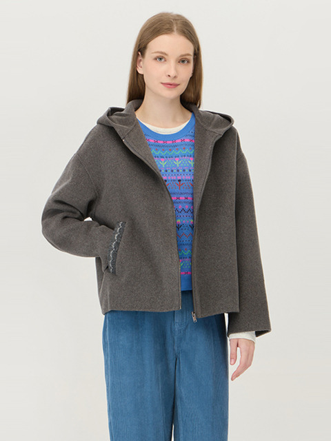 [베네통] 루즈 울 후드 코트_BACTF1561DG