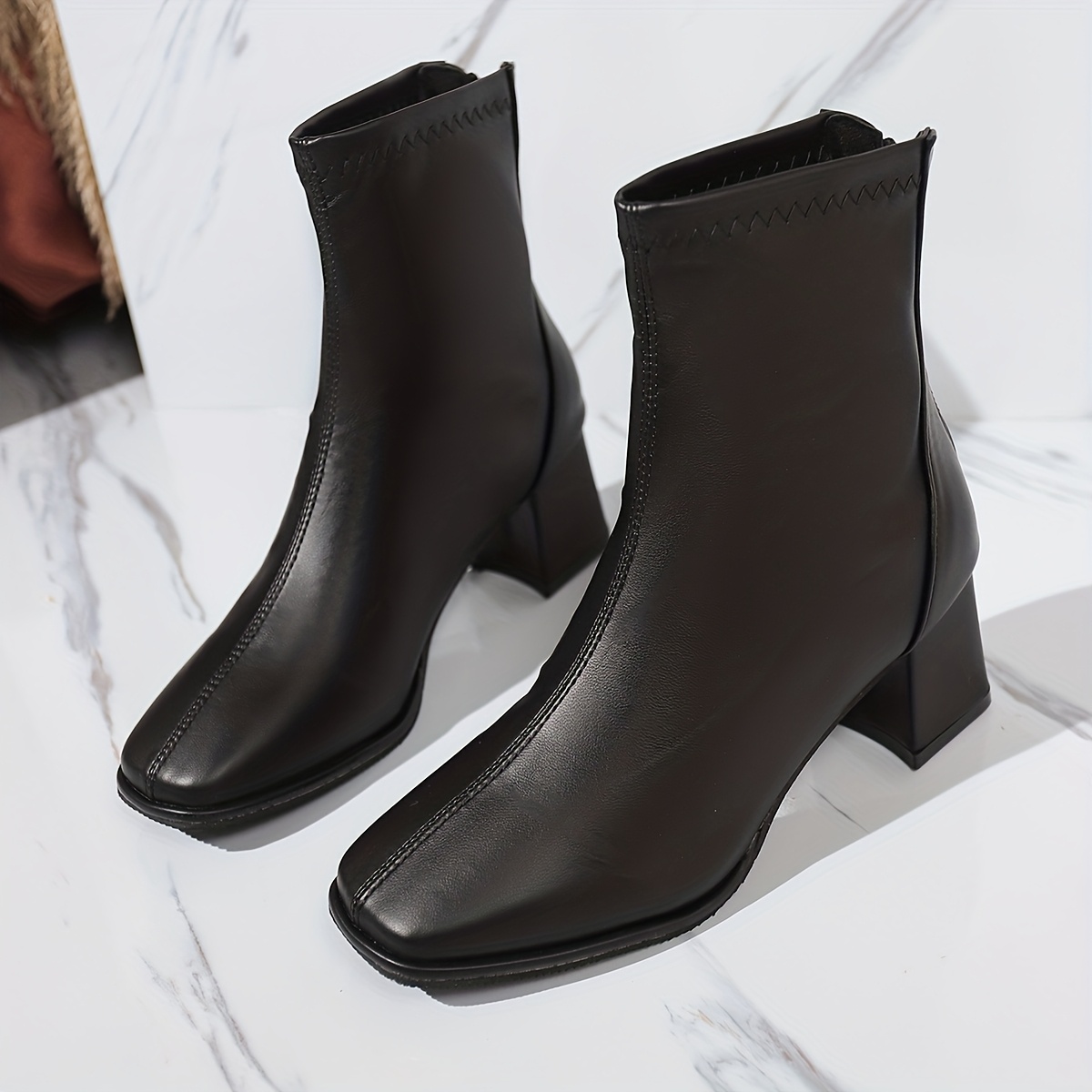 TEMU 여성 레트로 청키 힐 앵클 부츠 - 슬립온 지퍼 클로저, 사각 토 미드-카프 부츠, 쿠션 안창 & 미끄럼 방지 고무 밑창, 오피스, 파티 - 간편한 세척 합성 커버, 청키 힐 부츠, 오피스 신발, 레트로 스타일