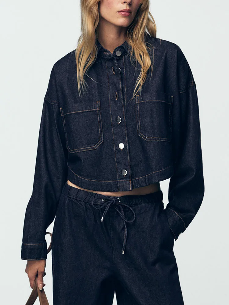 2025년 가을 신상 여성 캐주얼 데님 셔츠 숏 93423 청바지 934232 민족 무대 의상 전통 한복 의류