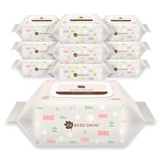 베베그로우 엠보싱 대용량 물티슈 캡형, 54g, 100매, 10개