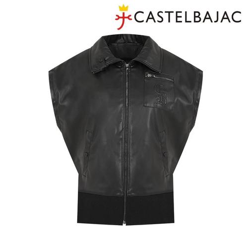 [까스텔바작]여성_[신상인기상품]_블랙라인 볼륨자수 레더 베스트_BGEWVT801_BK_DJ_DJ