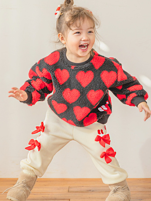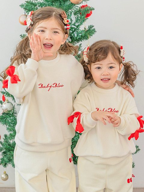 [베이비블리] D25116 리본 밍크 기모 맨투맨