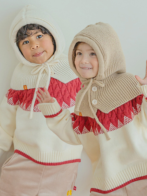[KC인증]아기 바라클라바 모자 곰돌이 베어 겨울 니트 일체형