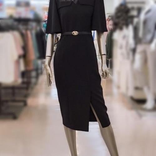 옷자락 / 여자 상견례룩 배색 카라넥 블랙 레이스반팔 롱원피스
