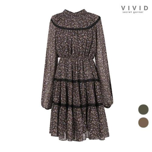 [비비드 시크릿가너]VIVID 잔꽃무늬 레이스배색 봄가을 쉬폰 원피스