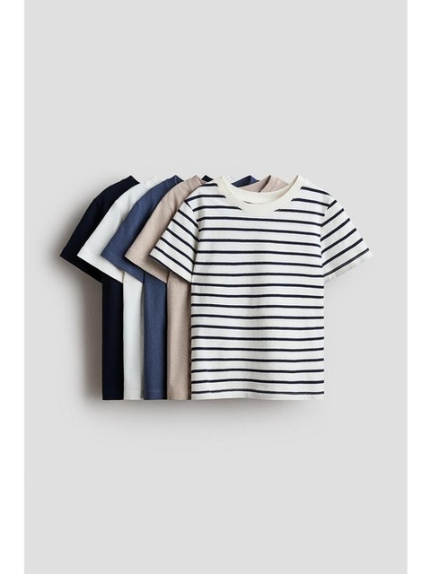 [에이치엔엠] 코튼 티셔츠 5피스 세트 베이지/블루/크림색 1318296003