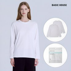 베이직하우스 여성용 통기성 40수 릴렉스핏 라운드 긴팔티셔츠 2종 세트