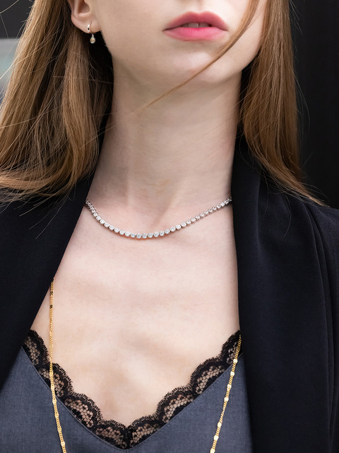 [비긴스] [실버925]BB 베젤 테니스 목걸이 3.0
