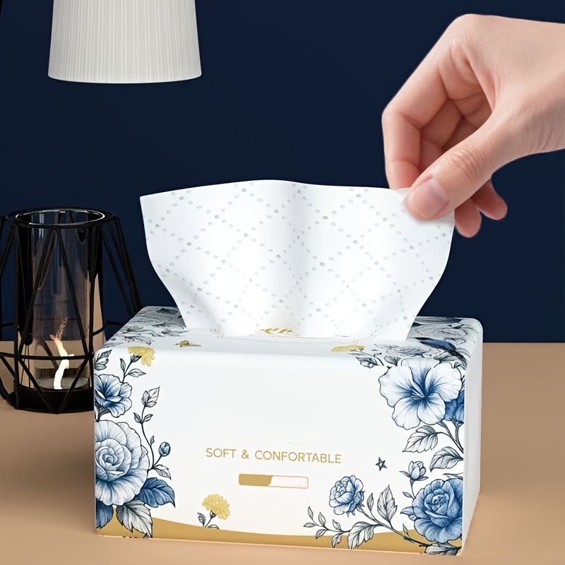 TEMU 400매 대용량 5겹 두꺼운 엠보싱 티슈 - 천연 순수목재, 고흡수성과 내구성을 자랑하는 우아한 블루 & 화이트 플로럴 디자인. 주방, 욕실, 가정용, 여행, 사무실, 기숙사 필수품으로 적합하며 사무용품에도 완벽한, 스타일리시한 화장실 휴지,부드러운 질감,다용도 티슈