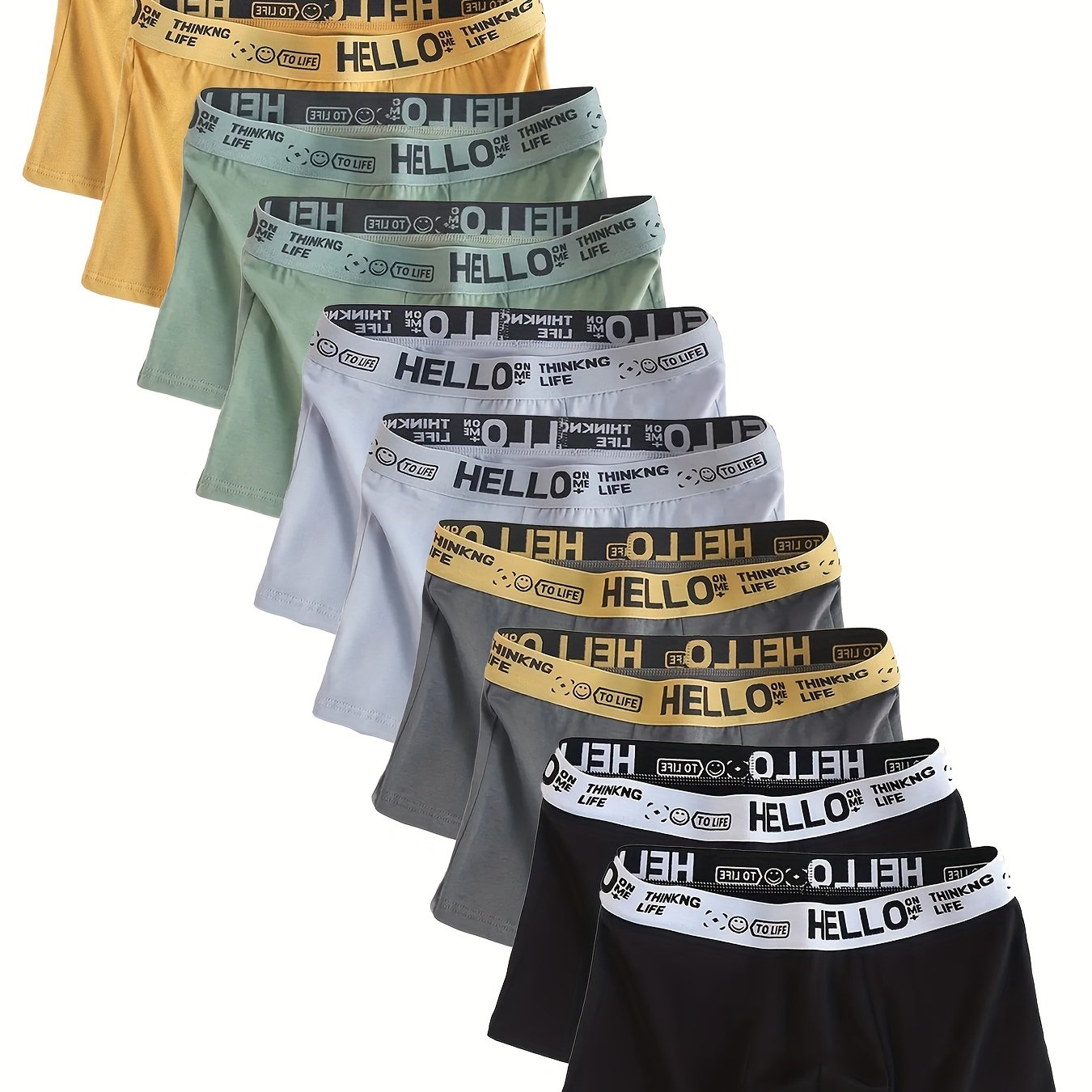 TEMU 남성용 박서 쇼츠 세트 10개, 남성을 위한 필수품, 캐주얼한 단색 속옷, 세련된 트렌디한 문자 허리밴드, 신축성, 편안함, 부드럽고 통기성이 좋은 남성용 속옷, 일상적인 착용에 적합한 내구성 있는 스포츠 반바지.